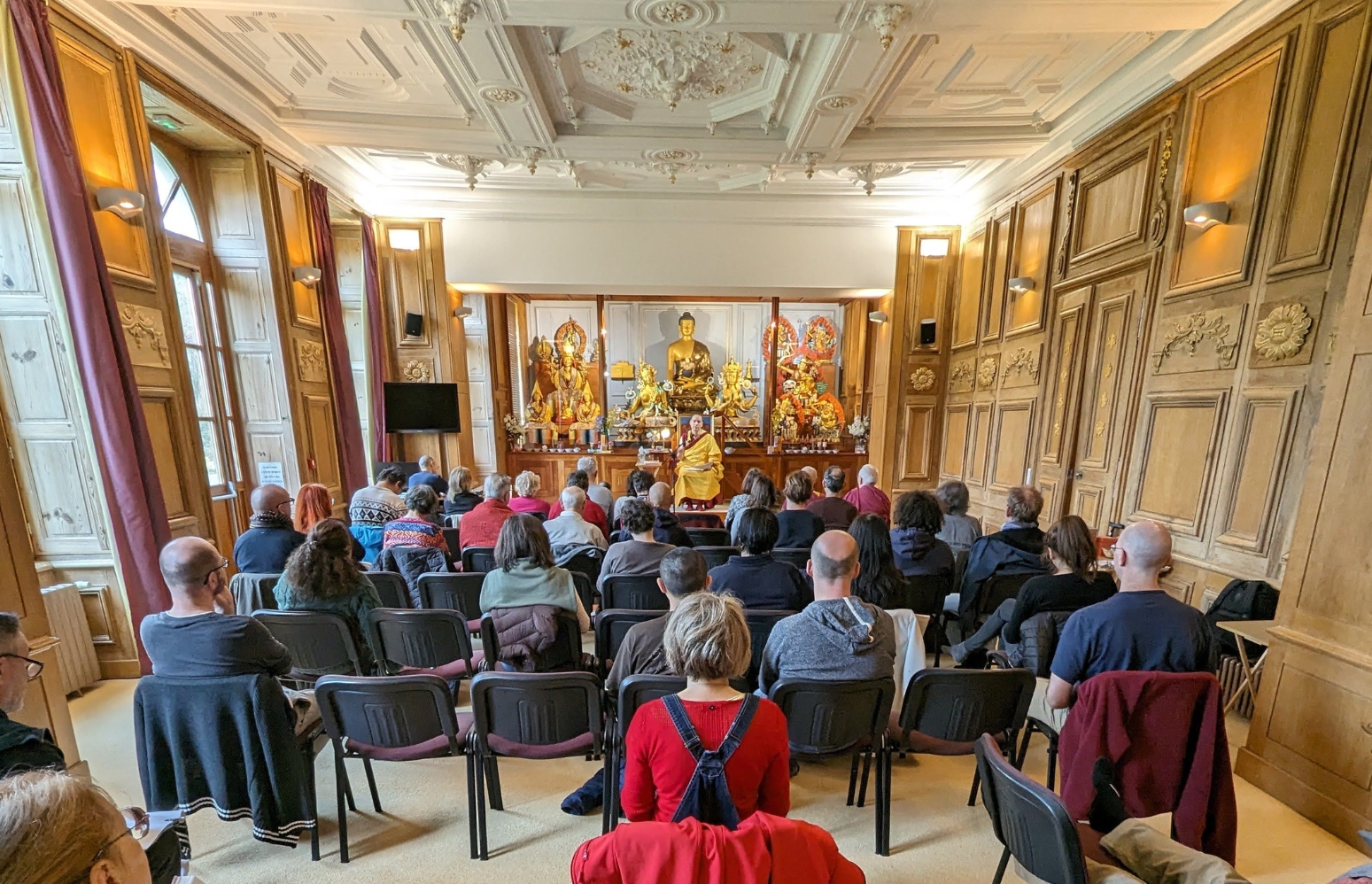 Livret de prière utilisé : La Cérémonie du refuge mahayana et la cérémonie des vœux du bodhissattva