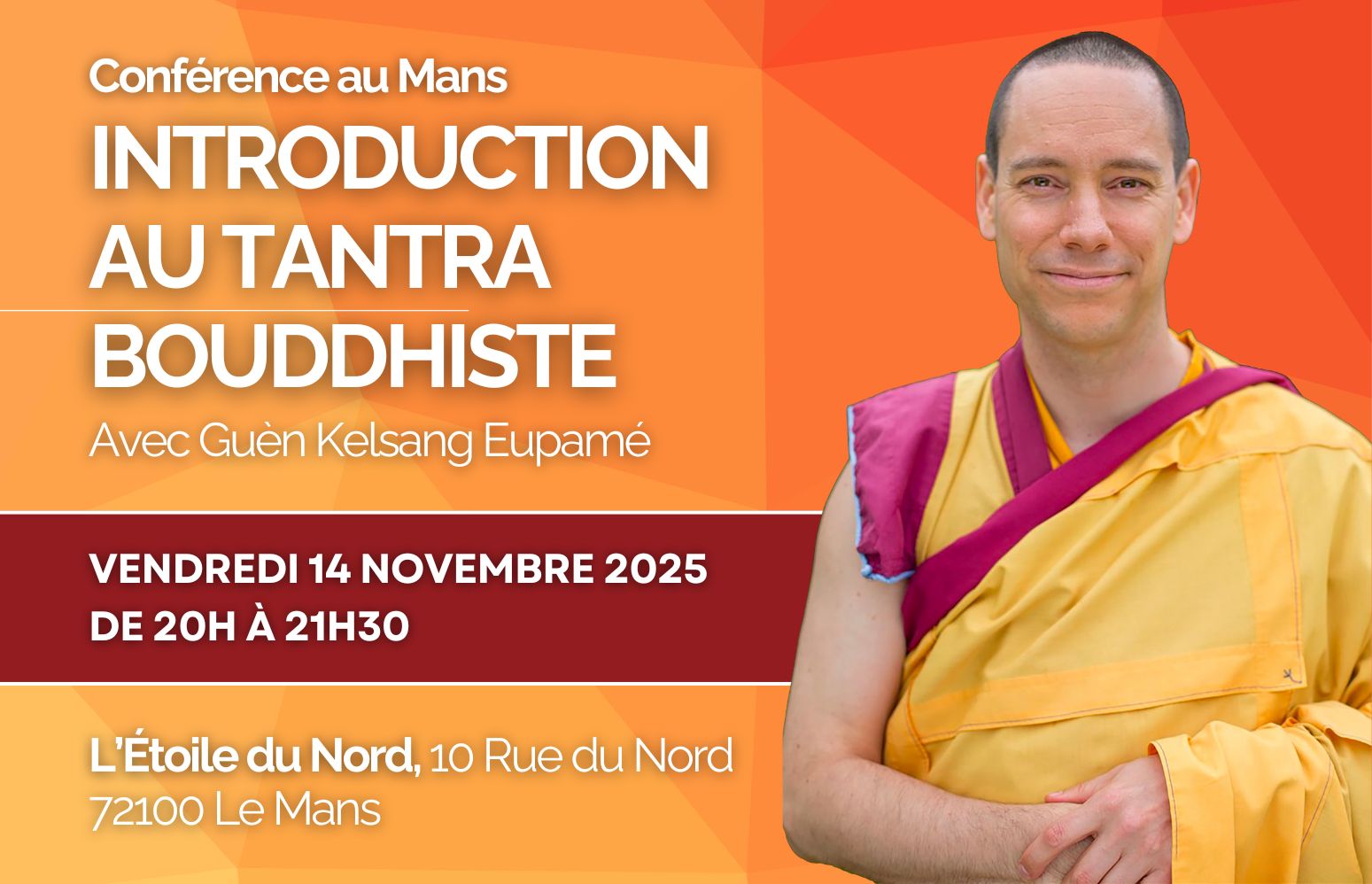 Lors de cette conférence, Guèn Kelsang Eupamé, directeur spirituel national de la Nouvelle Tradition Kadampa en France, nous donnera une introduction au tantra bouddhiste – très différent d’autres approches en vogue appelées également « tantra ». Il expliquera comment il s’agit d’une pratique à la fois profonde et puissante, mais également accessible à tous, grâce aux instructions claires issues de l’expérience personnelle de Vénérable Guéshé Kelsang Gyatso Rinpoché.