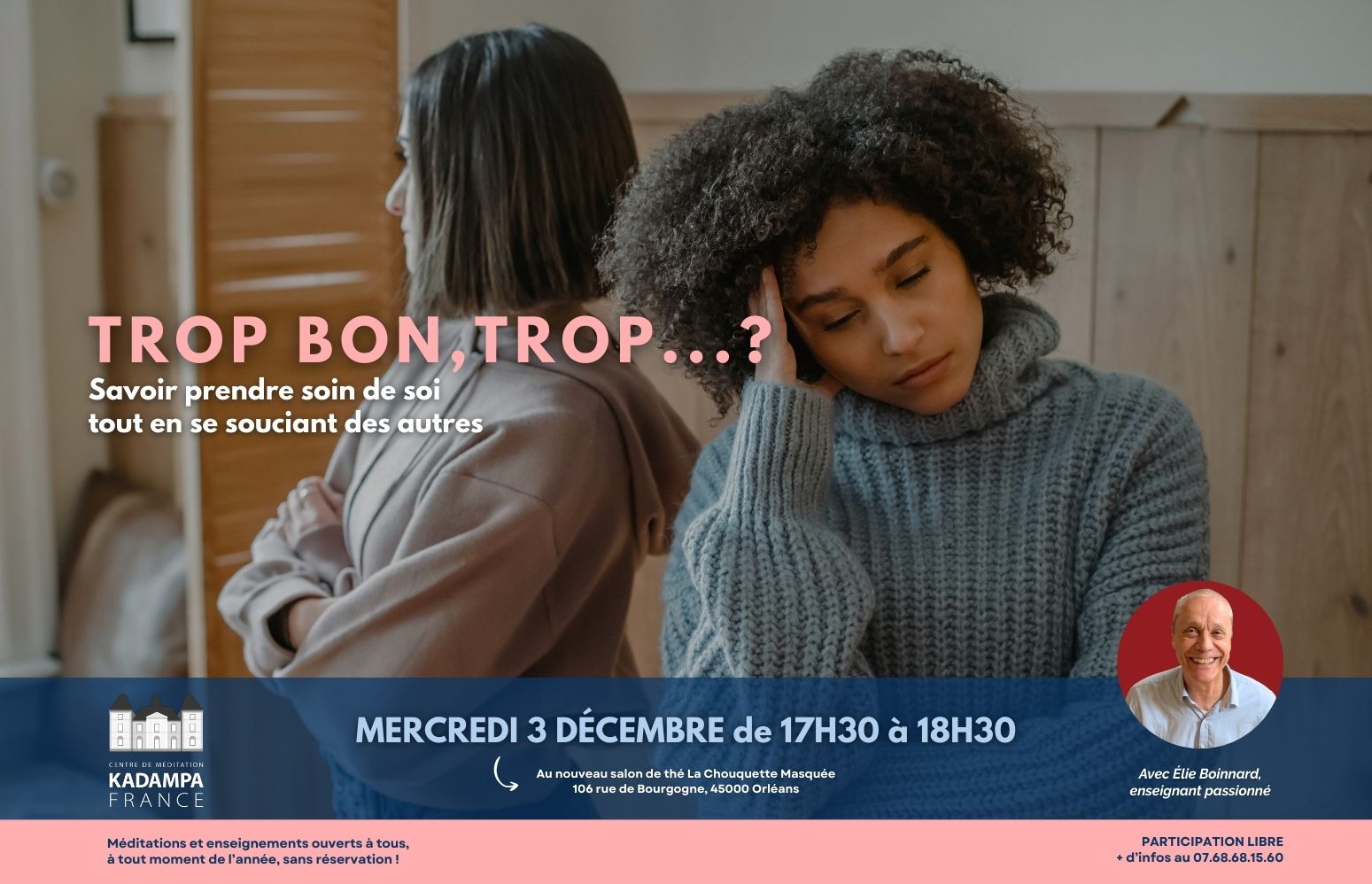 Lors de cet atelier au salon de thé La Chouquette Masquée, nous commencerons nous relaxer grâce à une méditation guidée. Puis Élie nous partagera le point de vue bouddhiste sur la manière d’aimer avec justesse. En comprenant mieux le fonctionnement de nos pensées, la sagesse bouddhiste nous montre comment offrir le meilleur de nous-mêmes, sans arrière-pensée, sans s’épuiser, et sans tomber dans le fameux “trop bon, trop c…”. Elle nous aide à développer un altruisme authentique et équilibré, source de joie.